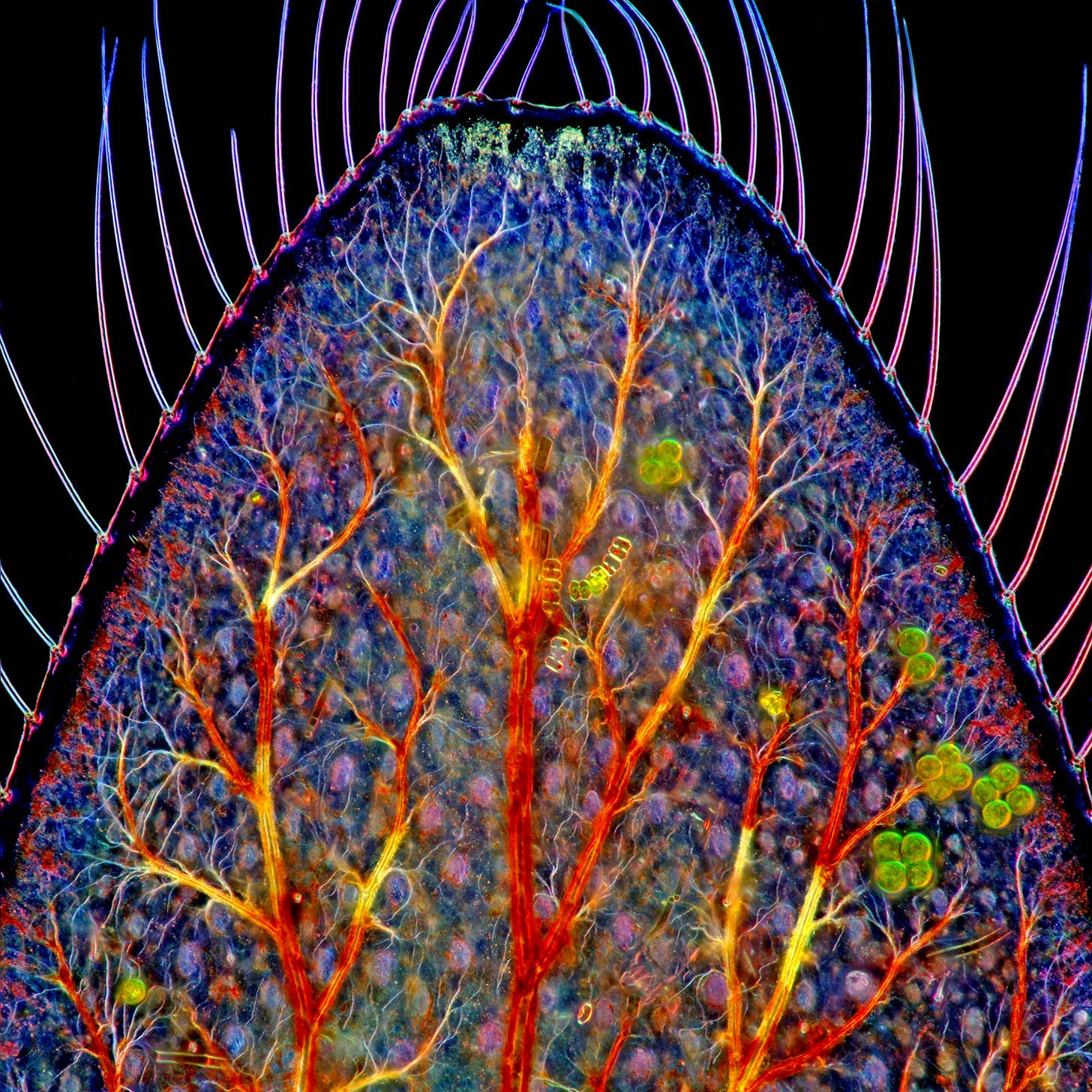 It is a photo of the caudal gill of a dragonfly larva at 25x magnification using a polarised filter. Modern camera technology has exposed us to a world soaked with beauty, extravagant with it. We may well have lost intimate knowledge of the natural world (researchers in the UK have found that children are “substantially better” at identifying Pokémon “species” than “organisms such as oak trees or badgers”). But on my screen, I have seen the rings of Saturn lit by an eclipsing sun, the iridescent scales on a butterfly wing, the soft burnish of copper crystals, the deep blue of the feathers of a plum-throated cotinga; I have heard the mournful melody of whale song and the buzz, ping, and pew of ice freezing on a lake in Sweden. I have marvelled. To be a modern person is to experience wonder at the beauty of the world.